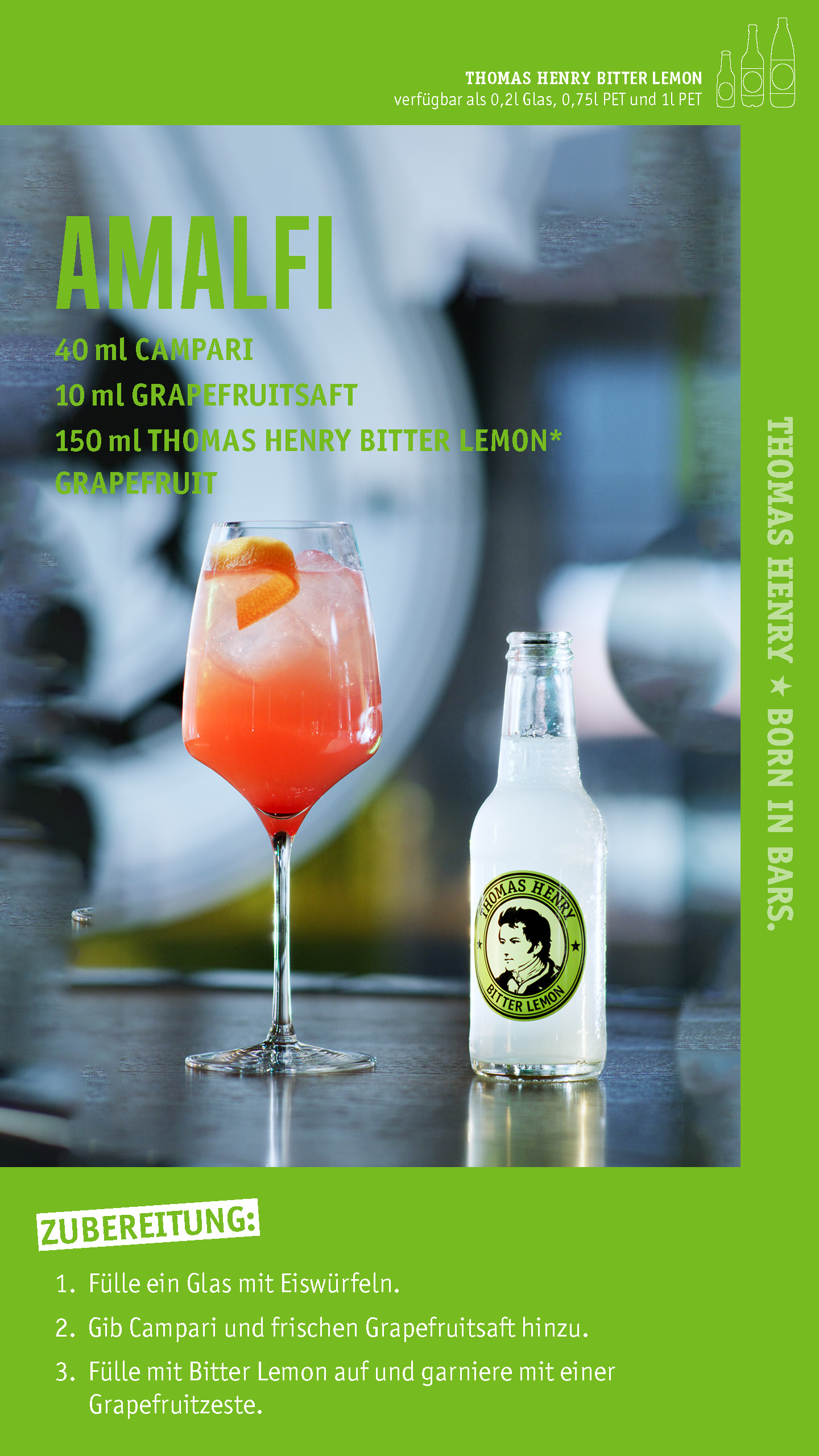 Thomas Henry Bitter Lemon bringt die Balance aus Süße und Bitterkeit. Langsam auffüllen, einmal kurz rühren. Mehr Bewegung nimmt Frische.