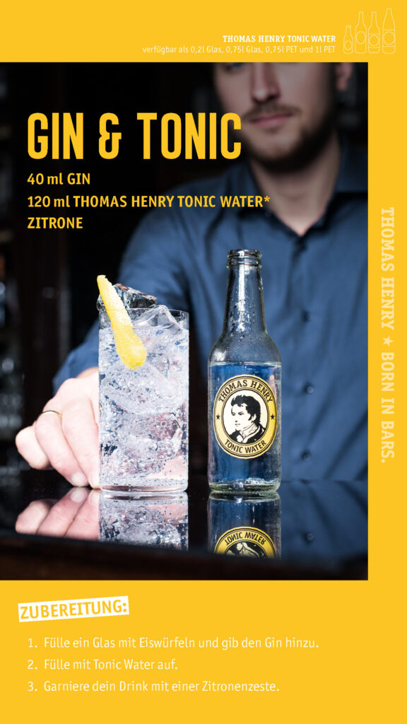 Gin Tonic ist der Klassiker, der immer liefert. Gin, viel Eis, Thomas Henry Tonic Water – bitter, frisch, sauber im Finish. Hier findest du das Rezept plus Bartender-Tipps für den Unterschied zwischen „ganz gut“ und „genau so“.