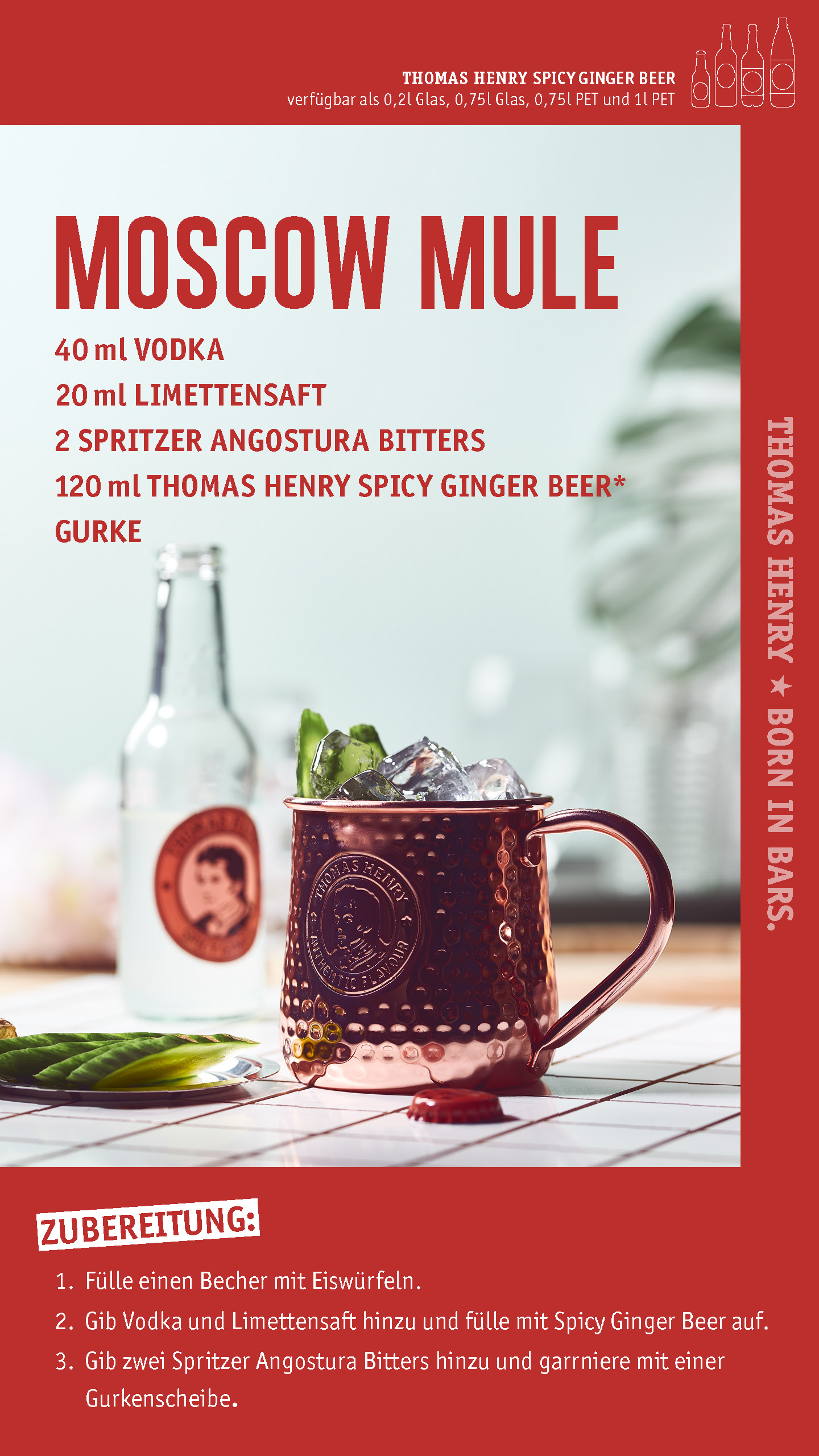 Thomas Henry Spicy Ginger Beer bringt die Schärfe, die der Mule braucht. Ohne diese Würze wird er flach.